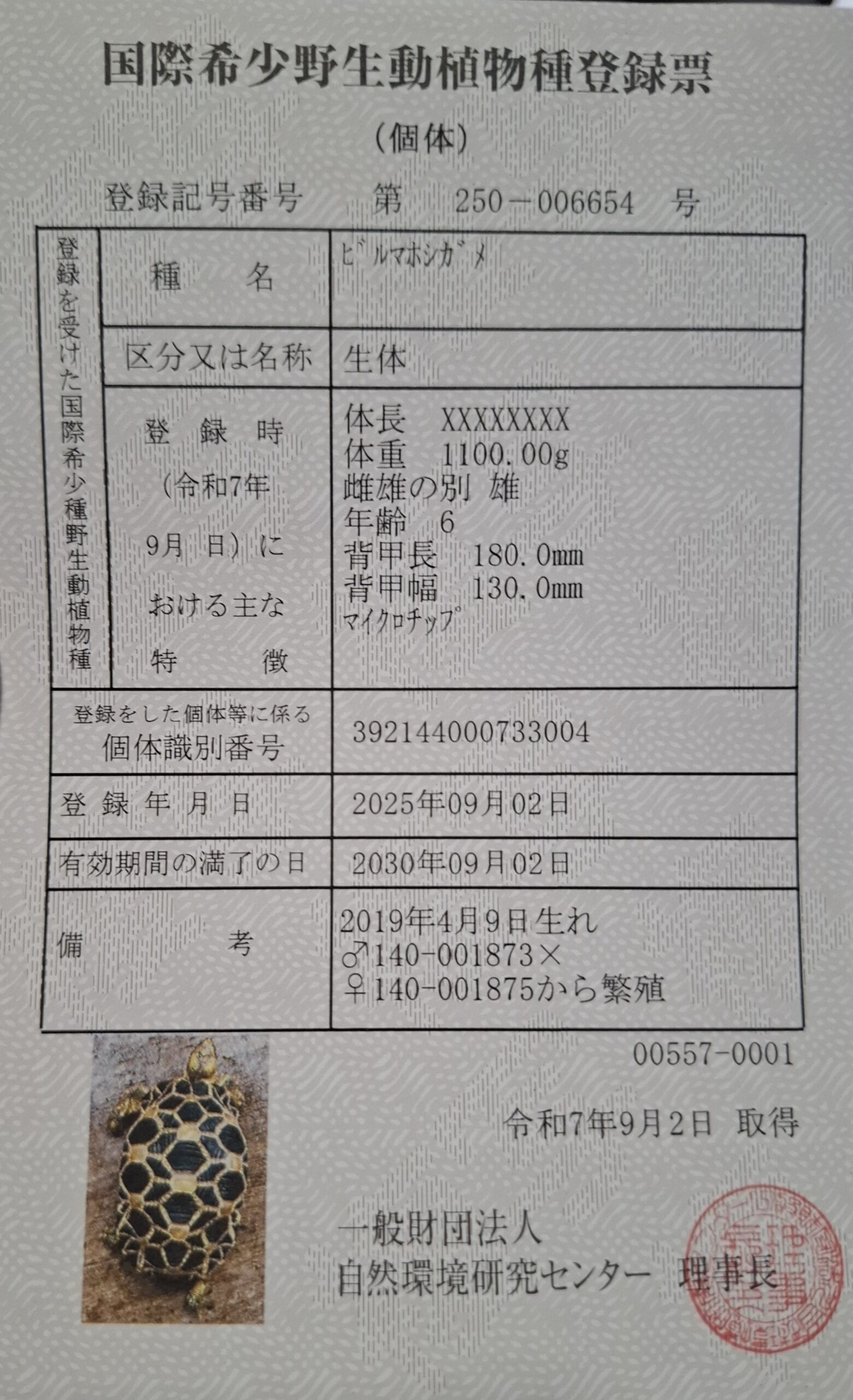 前の商品 ビルマホシガメ(甲長約19cm)オス(登録番号250-006654号/有効期限2030年9月2日) ¥240,000 ビルマホシガメ(甲長約19cm)オス(登録番号250-006654号/有効期限2030年9月2日)個 お買い物カゴに追加 カテゴリー: リクガメ, 新入荷 関連商品 クイックビュー クイックビュー 新入荷, ヘビハルマヘラパイソン(約160cm)オス(冷凍マウスOK) ¥128,000 クイックビュー クイックビュー 新入荷, ミズガメフロリダハコガメ(甲長約12cm)WCF1 オス ¥350,000 クイックビュー クイックビュー 新入荷, ヘビブラジルレインボーボア(約160cm)メス ¥69,800